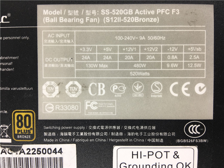 海@韻 SS-520GB 有線電源非模組運輸途中有刮花.總體成色為8新.