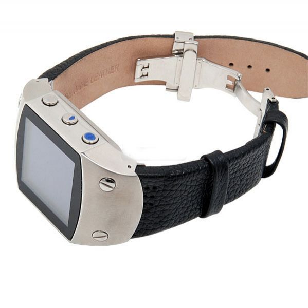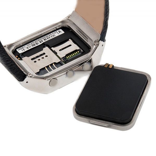 更換電池!盡善盡美! 1. 手錶式手機,1.5寸橫屏純平觸摸屏 全不銹鋼機身達配黑色皮質錶帶,盡顯高檔豪華。 2. 藍牙功能 內置超大快速快閃記憶體,運行速度快,絕不拖泥帶水。