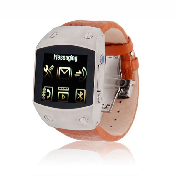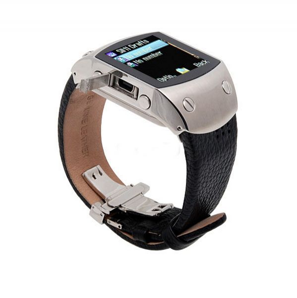 1,2012年最新款全鋼機身手錶手機,真皮豪華錶帶。