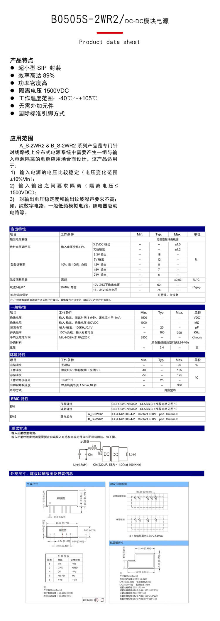 B0505S-2WR2 直插 5V/2W DC-DC電源模組 W1062-0104 [382146]