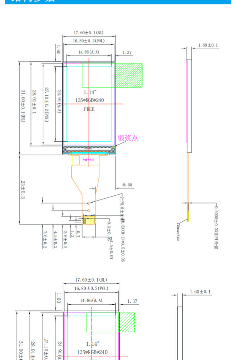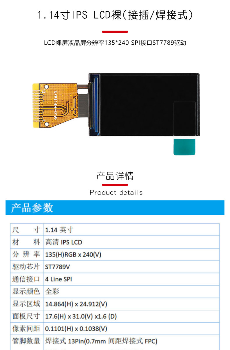 W1062-0116 1.14寸彩色TFT顯示屏高清IPS LCD裸屏液晶屏 SPI接口ST7789驅動