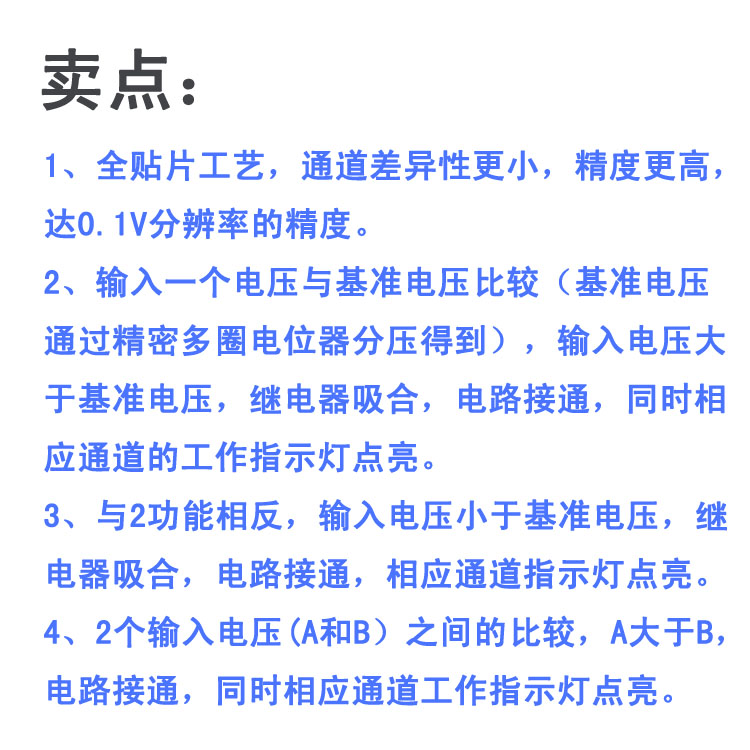 【模組名稱】:高精度4路電壓比較模組(精度解析度達0.1V)