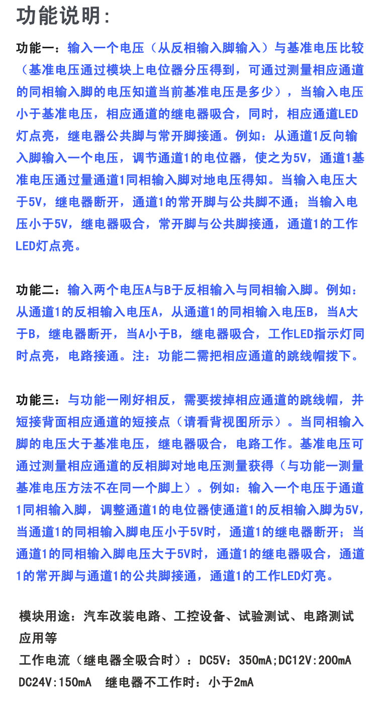 【功能特性】:通過比較兩個電壓來控制電路的導通或關閉